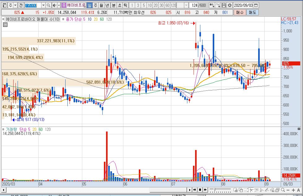 금일(9/3) 양봉을 세워줬기 때문에 개인적으로는 가장 좋아하는 차트의 모습입니다. 얼추 3중바닥을 지지하고 위로 내일 매물대를 강한 양봉으로 뚫어준기를 기대하고 내일 접근해봐야겠습니다.