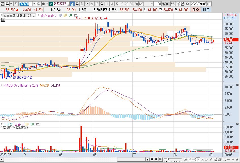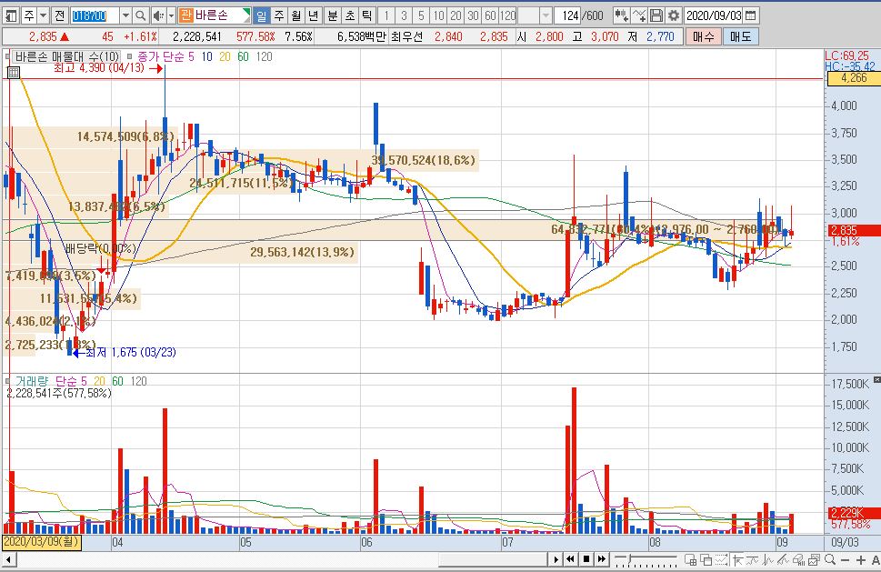 금일(9/3) 양봉을 세워줬기 때문에 개인적으로는 가장 좋아하는 차트의 모습입니다. 얼추 3중바닥을 지지하고 위로 내일 매물대를 강한 양봉으로 뚫어준기를 기대하고 내일 접근해봐야겠습니다.