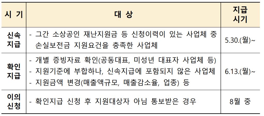 √ 소상공인 손실보전금 이의신청 기간 : 8월 중