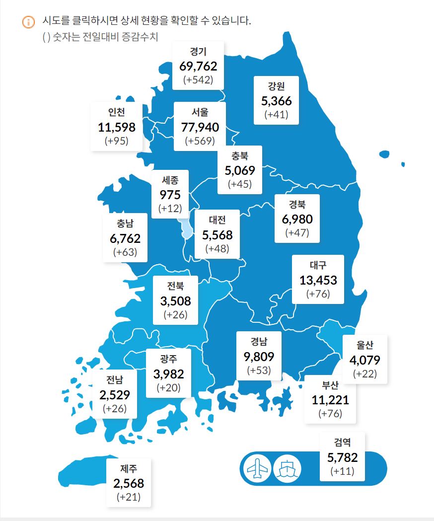 대전 48명, 경북 47명, 대구 76명, 울산 22명