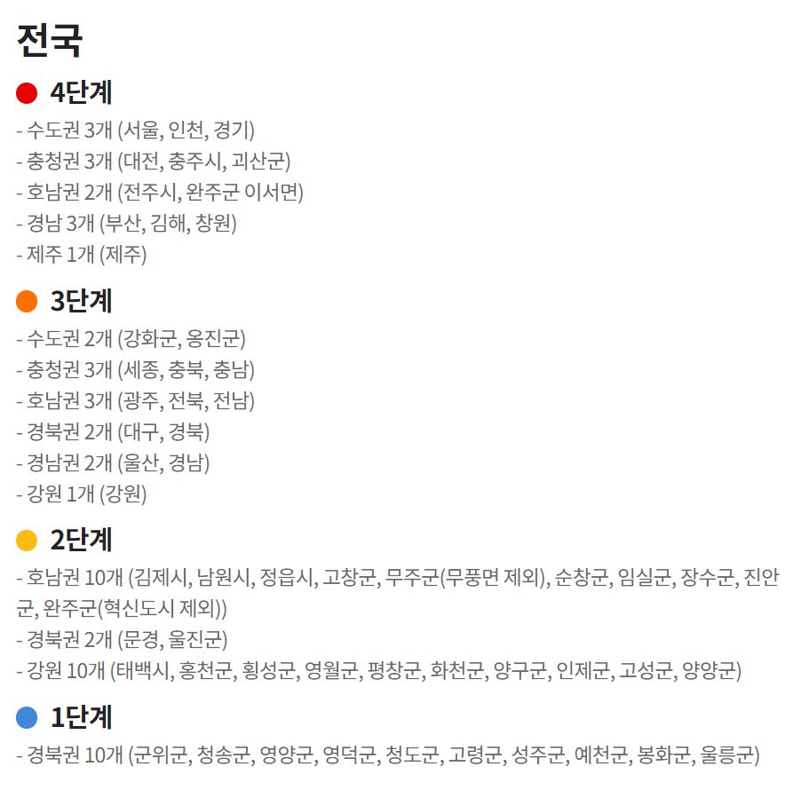사회적 거리두기 2단계 지역