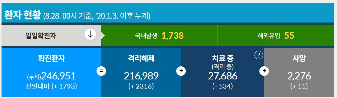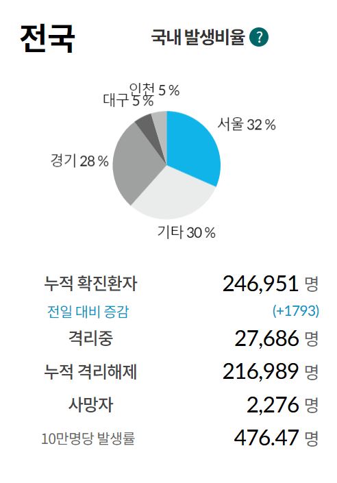 누적 확진자수 : 246,951명(+1,793)