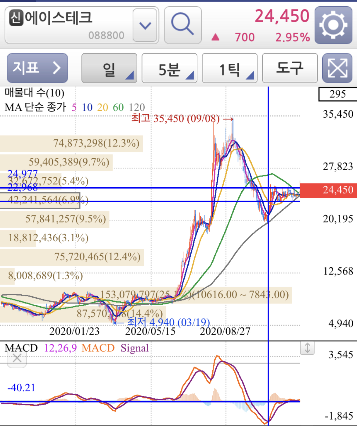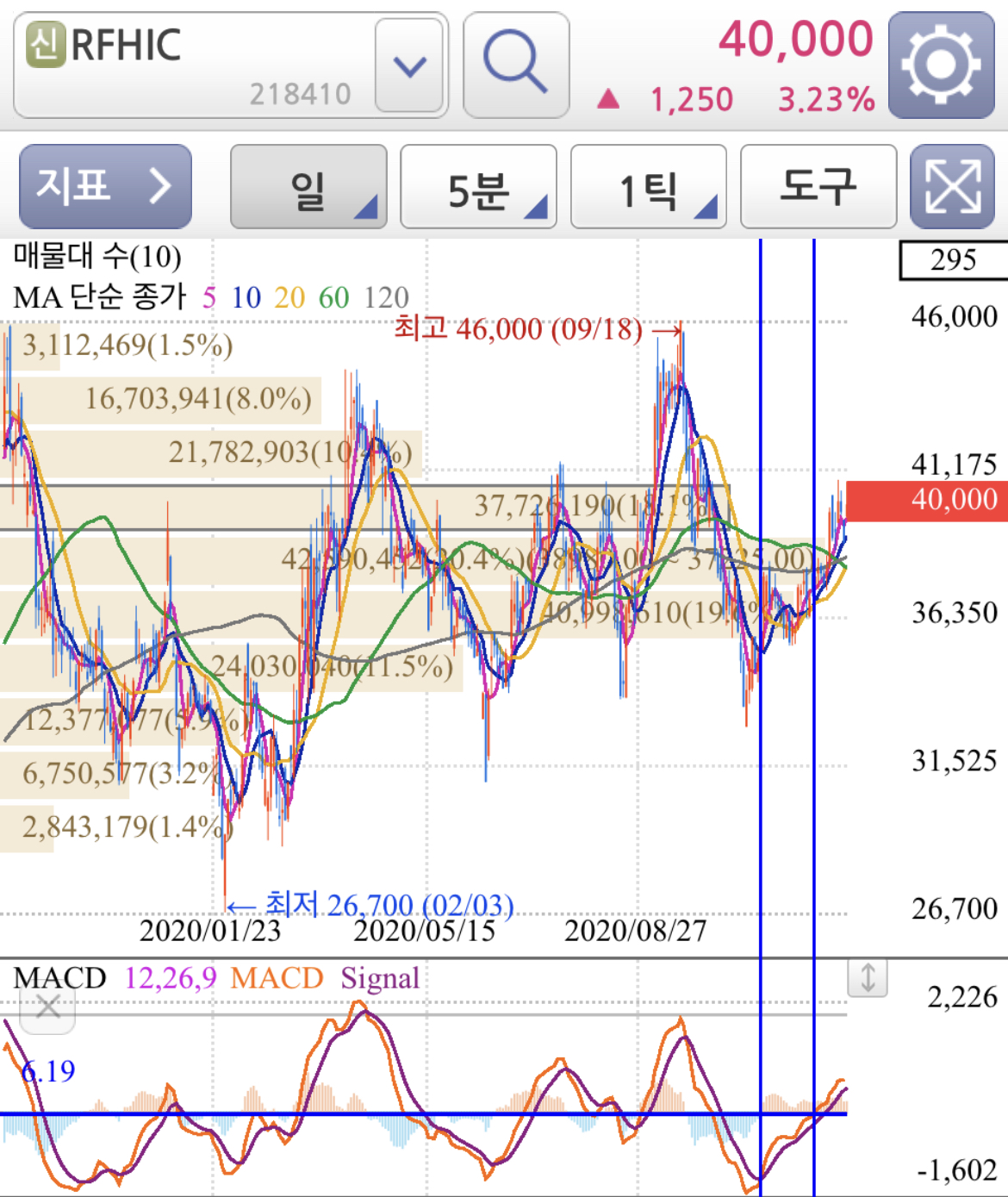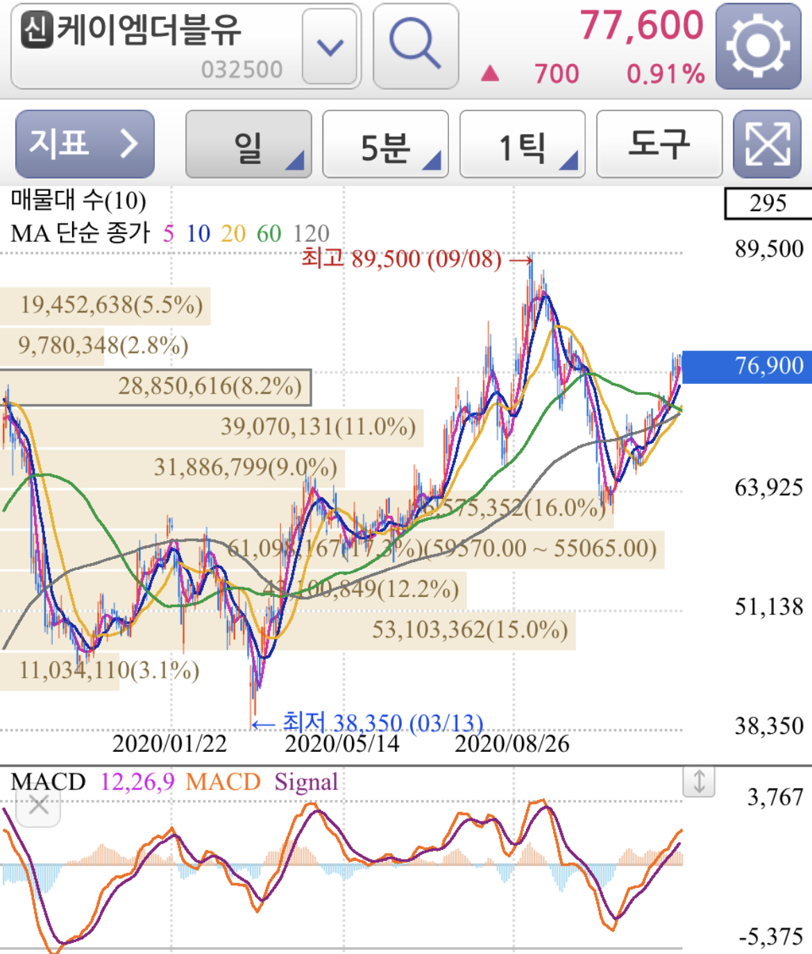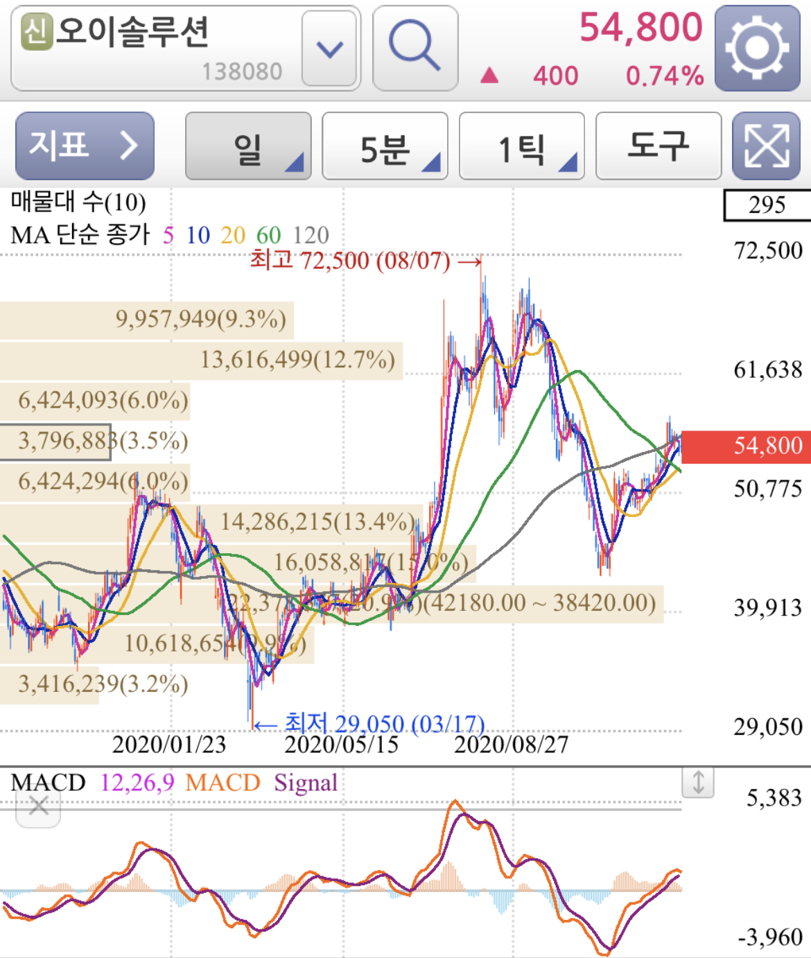 제가 좋아하는 MACD 차트에서도 조금씩 매집해가면 나쁘지 않을 듯 해보입니다